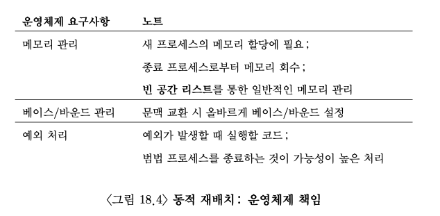 동적 재배치를 위해 운영체제가 해야할 것은 아래와 같다.