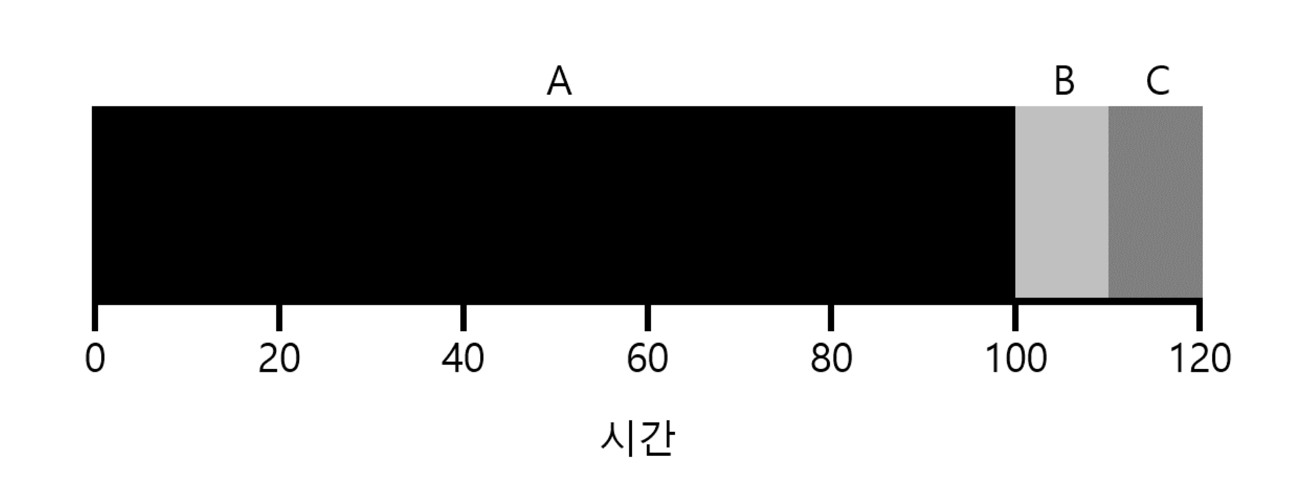 t=0에 도착하고 100초 동안 실행되는 A, t=10에 도착하고 10초 동안 실행되는 B, C를 STCF 스케줄링으로 실행시킨다고 하자. 이 작업들의 평균 반환 시간은?